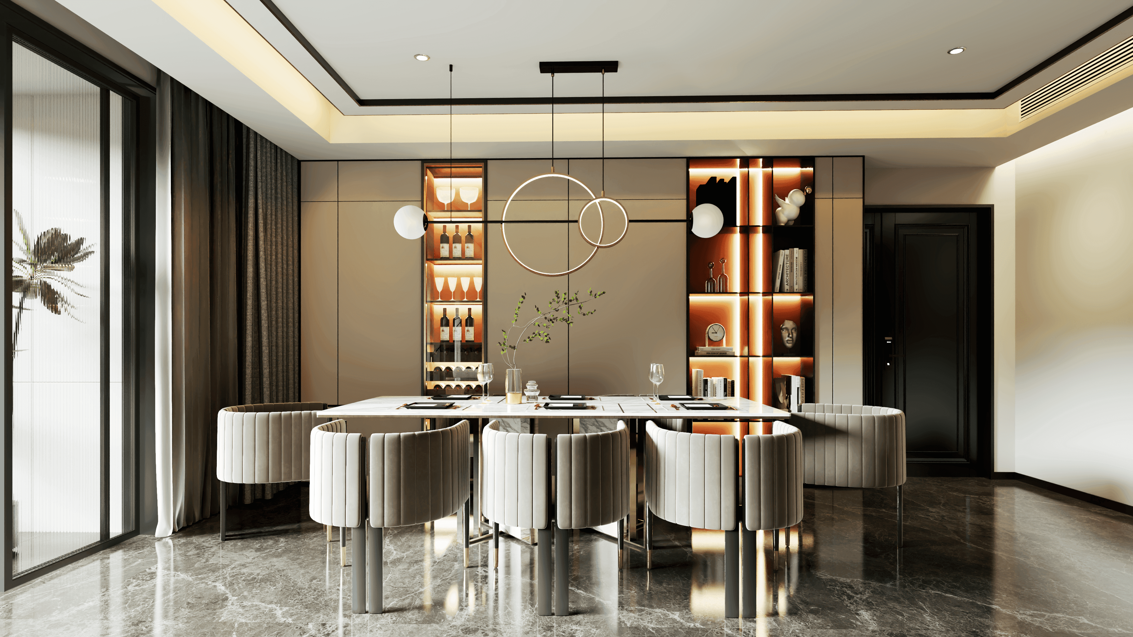 Imagine a setting where each detail—glowing surfaces, harmonious textures—creates a symphony of inviting splendor. Here, the ambiance wraps around you like a warm embrace, turning each dining experience into a magnificent story of refined indulgence and heartfelt togetherness
